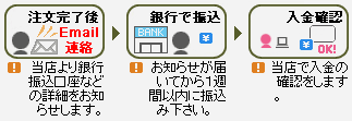 メールにて商品の確認と振込先口座をご連絡いたします。振込先口座にご購入金額を送金ください。